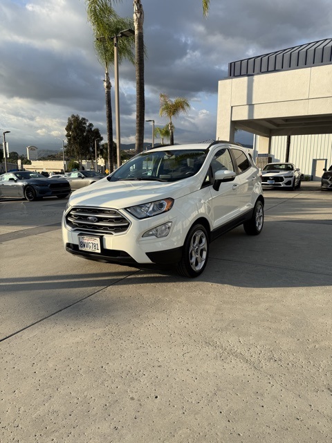 Diamond White 2021 Ford EcoSport SE FWD 6-Speed Automatic EcoBoost® 1.0L I3 GTDi DOHC Turbocharged VCT Equipment Group 200A, SE Appearance Package (6-Way Power Driver’s Seat, Leather-Wrapped Steering Wheel, Orange Instrument Panel Appliques, and Wheels: 17″ Shadow Silver Aluminum), SE Convenience Package (110V/150W AC Power Outlet, 7 Speakers, Ambient Lighting, BLIS Blind Spot Information System, SiriusXM Traffic & Travel Link, and SYNC® 3 Communications & Entertainment System w/47B), 3.44 Axle Ratio, 4-Wheel Disc Brakes, 6 Speakers, ABS brakes, Air Conditioning, Alloy wheels, AM/FM radio: SiriusXM, AppLink/Apple CarPlay and Android Auto, Automatic temperature control, Brake assist, Bumpers: body-color, Compass, Delay-off headlights, Driver door bin, Driver vanity mirror, Dual front impact airbags, Dual front side impact airbags, Electronic Stability Control, Emergency communication system: SYNC® 3 911 Assist, Exterior Parking Camera Rear, Front anti-roll bar, Front Bucket Seats, Front Center Armrest, Front fog lights, Front reading lights, Front wheel independent suspension, Fully automatic headlights, Heated front seats, Illuminated entry, Knee airbag, Leather Shift Knob, Low tire pressure warning, Occupant sensing airbag, Outside temperature display, Overhead airbag, Overhead console, Panic alarm, Passenger door bin, Passenger vanity mirror, Power door mirrors, Power moonroof, Power steering, Power windows, Radio data system, Radio: AM/FM/MP3 Stereo, Rear Parking Sensors, Rear seat center armrest, Rear side impact airbag, Rear window defroster, Rear window wiper, Remote keyless entry, Roof rack: rails only, SiriusXM Radio, Speed control, Speed-sensing steering, Split folding rear seat, Steering wheel mounted audio controls, SYNC® 3 Communications & Entertainment System, Tachometer, Telescoping steering wheel, Tilt steering wheel, Traction control, Trip computer, Turn signal indicator mirrors, Unique Cloth Heated Front Bucket Seats, Variably intermittent wipers, and Wheels: 16″ Shadow Silver-Painted Aluminum.